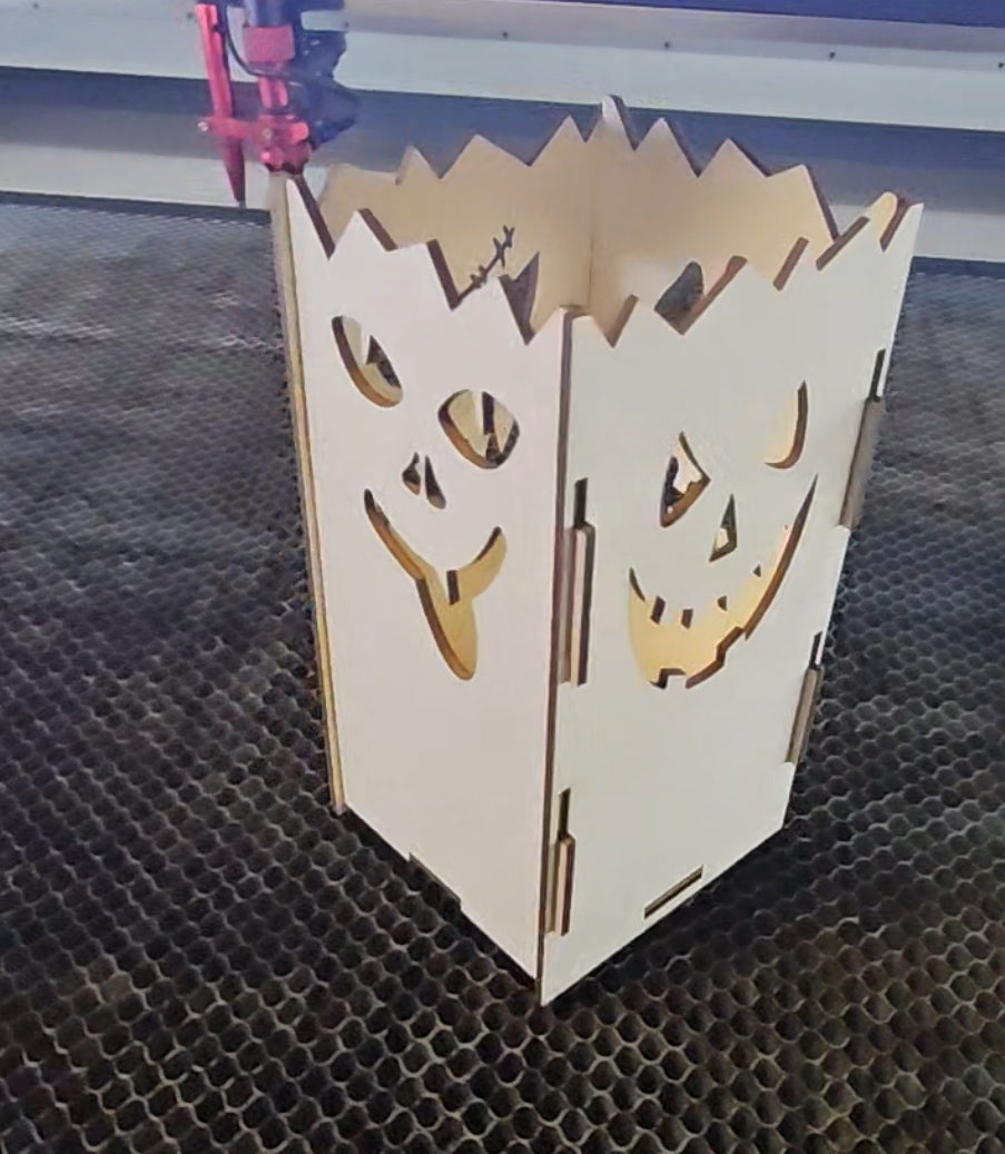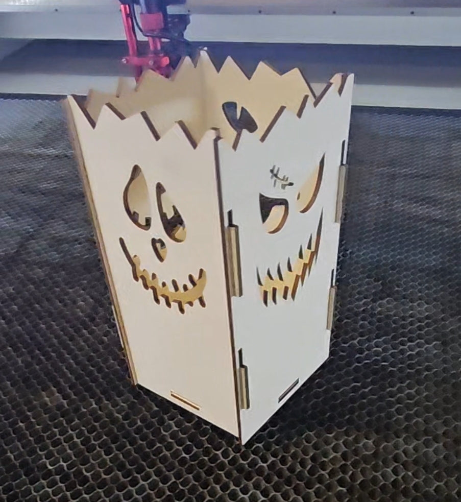 Laser Cut Wooden Pumpkin Face Decoration with LED Flicker Light